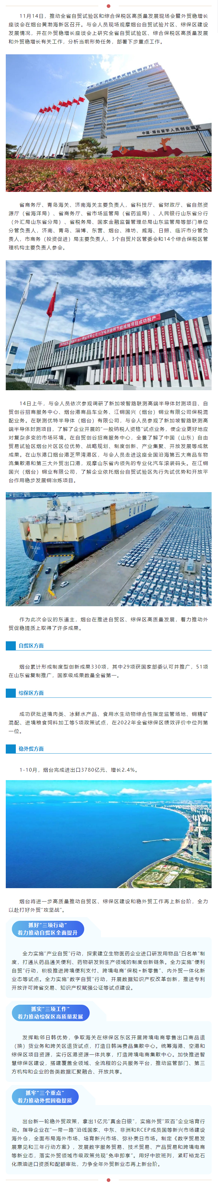全力以赴打好外貿(mào)攻堅(jiān)戰(zhàn)丨全省自貿(mào)試驗(yàn)區(qū)和綜合保稅區(qū)高質(zhì)量發(fā)展現(xiàn)場會暨外貿(mào)穩(wěn)增長座談會在煙臺黃渤海新區(qū)召開